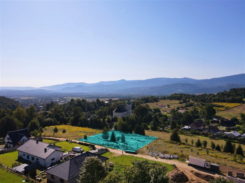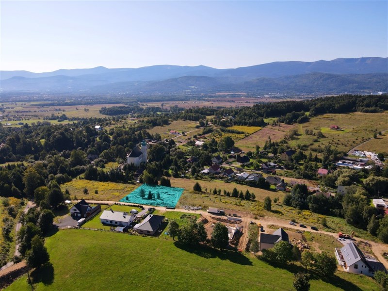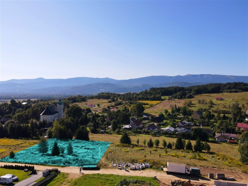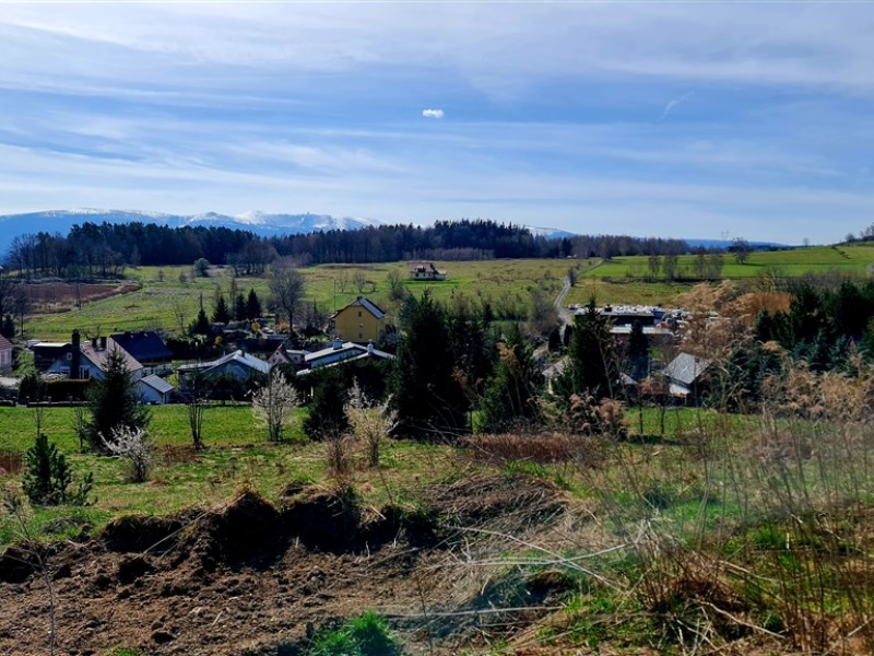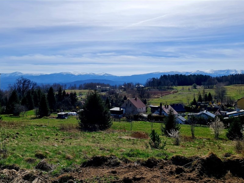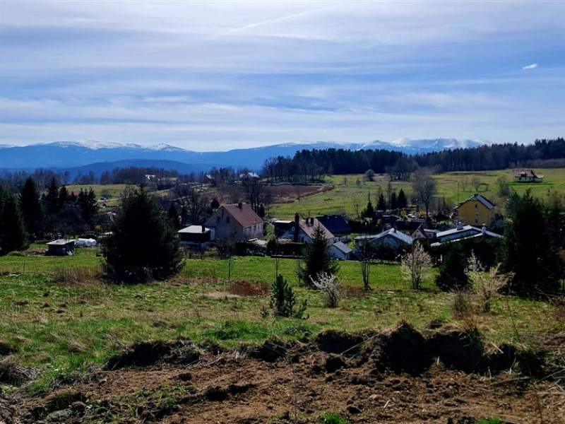 Działka położona na wzniesieniu z pięknymi widokami na całe pasmo Karkonoszy!