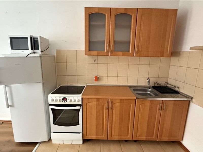 Mieszkanie składa się z pokoju z aneksem kuchennym, dodatkowych dwóch pokoi, łazienki z wc.