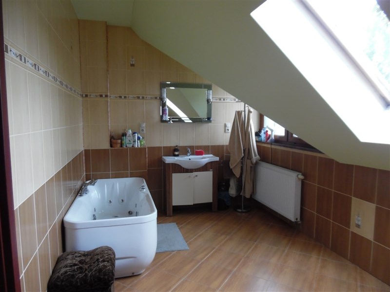 Parter i łazienka na piętrze mają ogrzewanie podłogowe.