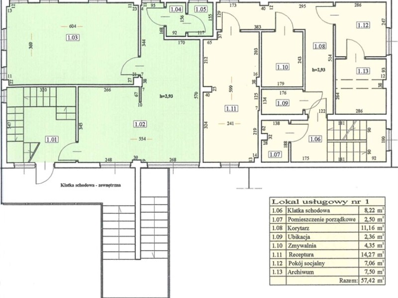 - lokal nr 1 o pow. 169,51 m2 z powierzchnią handlowo-ekspozycyjną: parter + I piętro