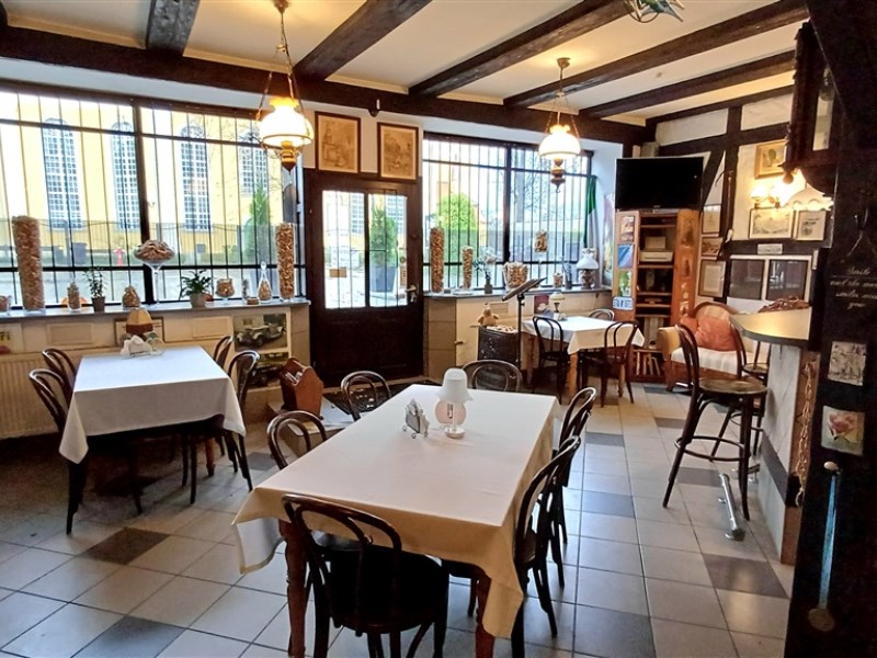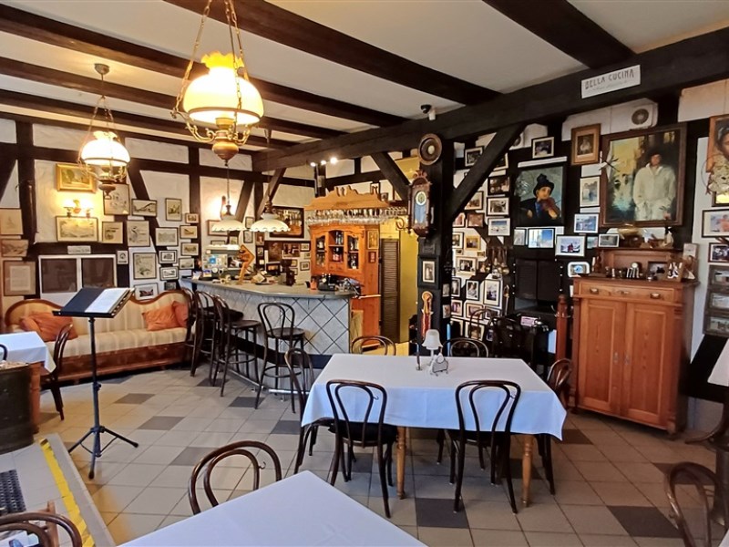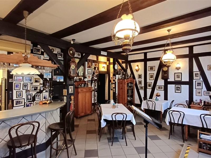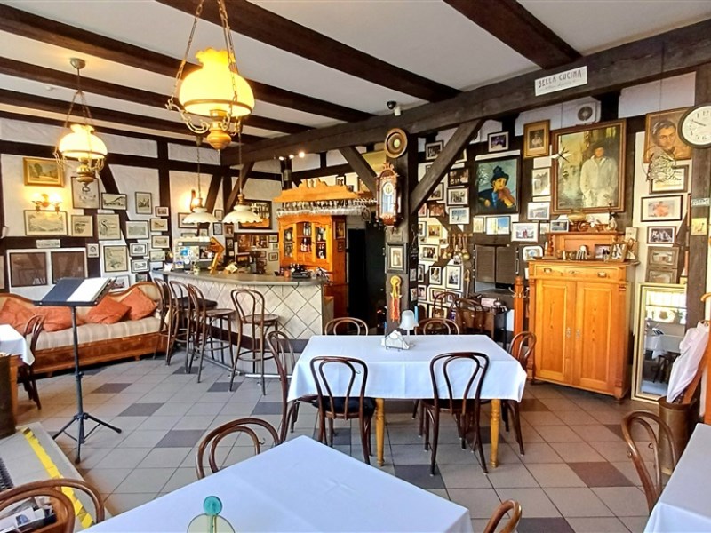 Zabytkowy budynek w konstrukcji szachulcowej pięknie wkomponowuje się w architekturę okolicy. Przed lokalem jest dużo miejsca na letni ogródek. Za budynkiem teren zamknięty z bramą na pilota i prywatnym miejscem parkingowym dla najemcy. Tylne wejście od strony zaplecza zapewnia łatwość przyjmowania dostaw, jest też dużym ułatwieniem przy obsługiwaniu zamówień z dowozem.