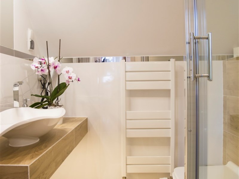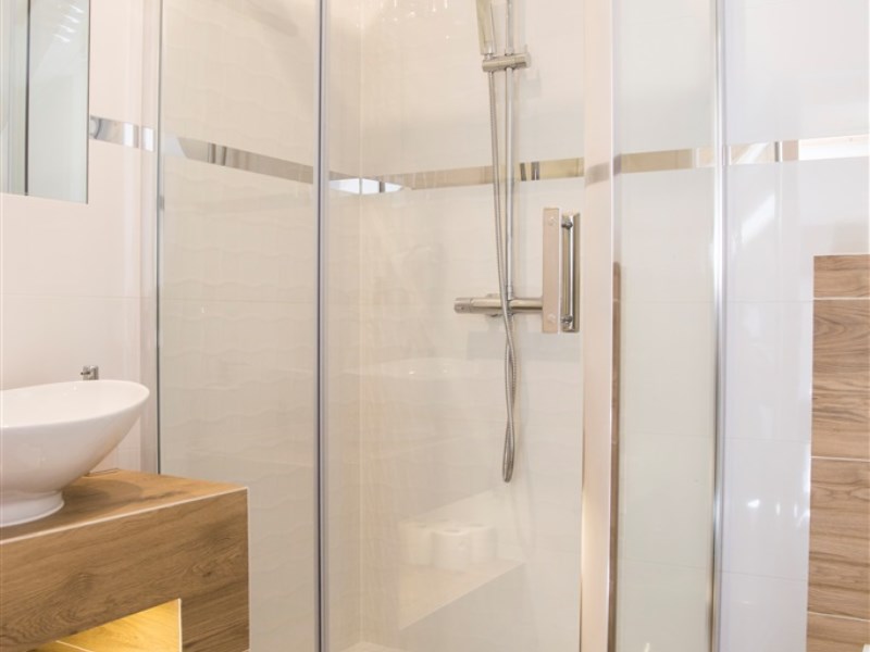 - apartament 4-osobowy, 45 m2 składający się z salonu z 2-osobową sofą i aneksem kuchennym, sypialni z łóżkiem małżeńskim oraz łazienki z tv z