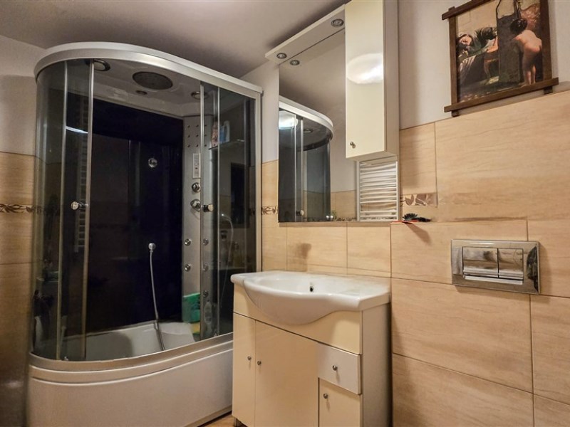 łazienka z WC oraz kabiną prysznicową