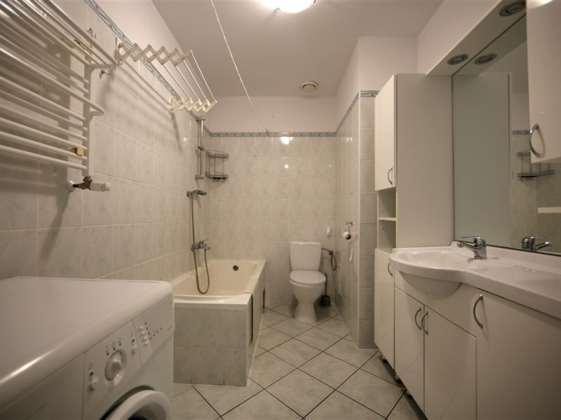 - przestronna, wygodna łazienka z wanną, toaletą, umywalką oraz pralką