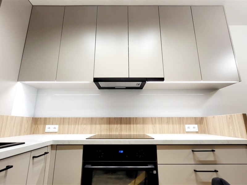Wyjątkowe materiały wykończeniowe, stolarka wykonana na zamówienie przez wybitnych, lokalnych rzemieślników. Sprzęt kuchenny w zabudowie marki Samsung.