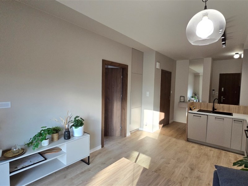 W skład apartamentu wchodzi: salon z kuchnią, przedpokój, łazienka oraz sypialnia
