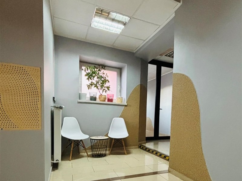 Lokal składa się z długiego korytarza prowadzącego do trzech niezależnych, dobrze doświetlonych pomieszczeń, co zapewnia komfortowe warunki do prowadzenia działalności biurowej, usługowej lub gabinetowej.