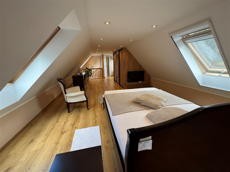 Całkowita powierzchnia użytkowa: 196 m² (w dokumentach: 117,25 m² – różnica wynika ze skosów i innych elementów konstrukcyjnych).