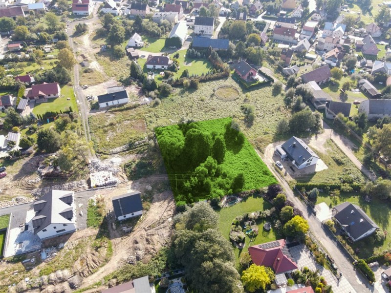 Działka ma kształt zbliżony do trapezu i jest bardzo dobrze nasłoneczniona. W bezpośrednim sąsiedztwie dostępne są wszystkie niezbędne media – prąd, woda, kanalizacja oraz gaz, co znacząco ułatwia przygotowanie terenu pod budowę. Zgodnie z miejscowym planem zagospodarowania przestrzennego nieruchomość oznaczona jest symbolem 04 RM, MN, R/ZL, co pozwala na zabudowę mieszkaniową jednorodzinną oraz zagrodową. Minimalna powierzchnia działki budowlanej wynosi 1250 m², a maksymalny wskaźnik zabudowy to 0,175.